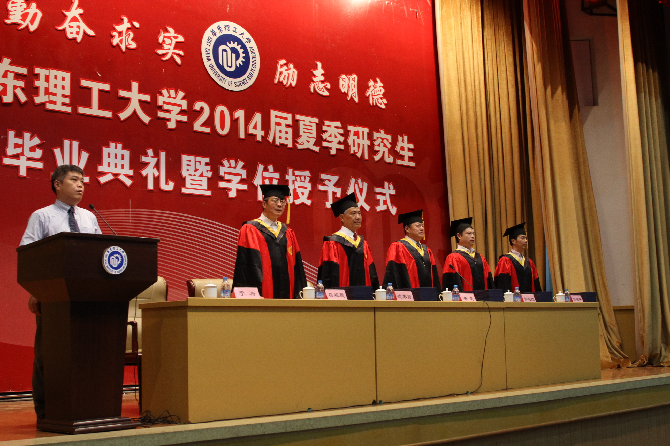 2014届夏季研究生毕业典礼暨学位授予仪式正式开始,全场起立,齐唱国歌。