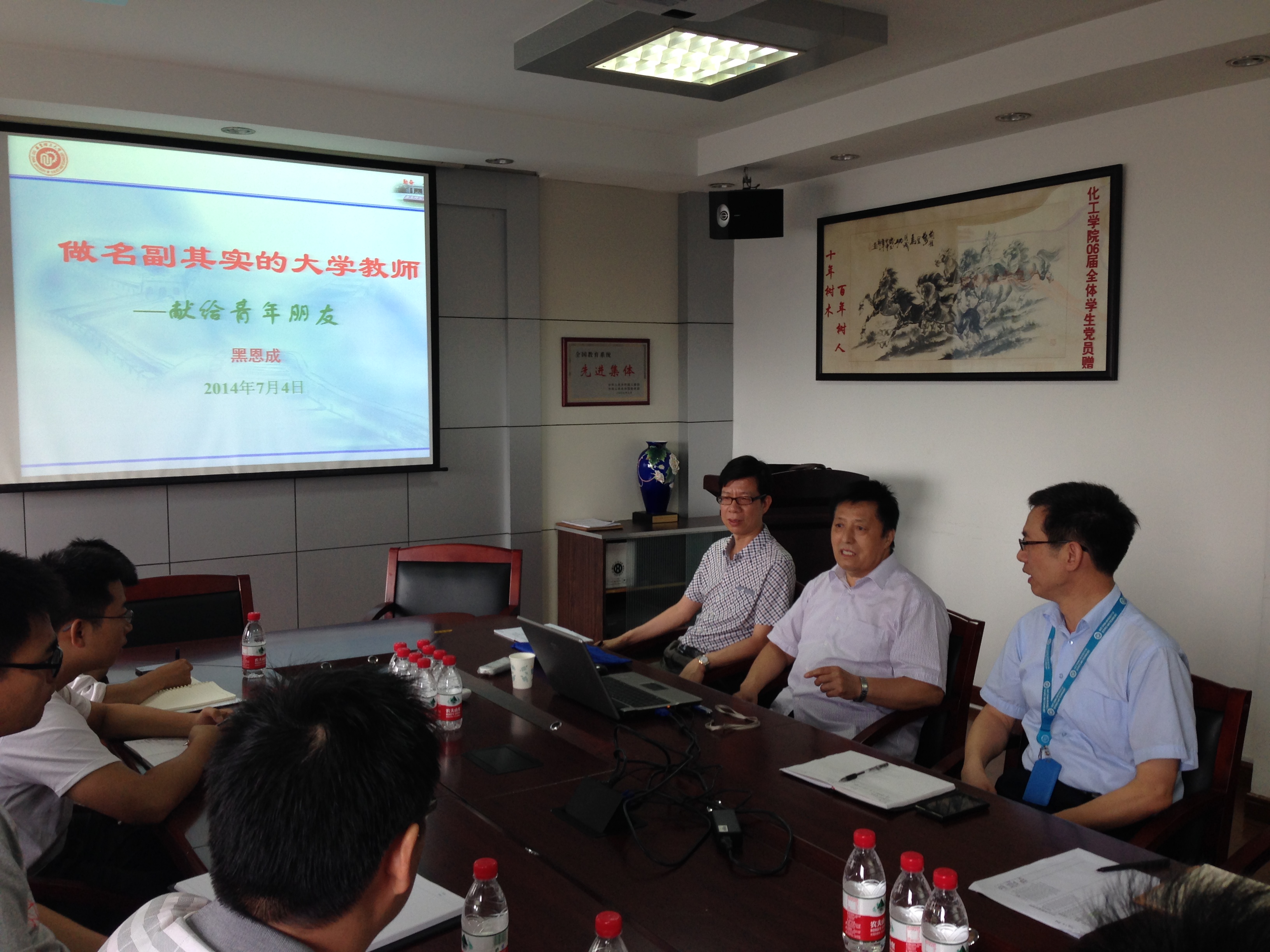 及资环学院参与培训的青年教师悉数到场,本次会议邀请到华东理工大学国家级教学名师黑恩成教授,与青年教师就“如何做名副其实大学教师”的话题进行面对面交流,旨在对青年教师的授课能力进行培养。基地负责人许志美教授主持,资环学院教学副院长黄光团教授等参加了交流研讨。