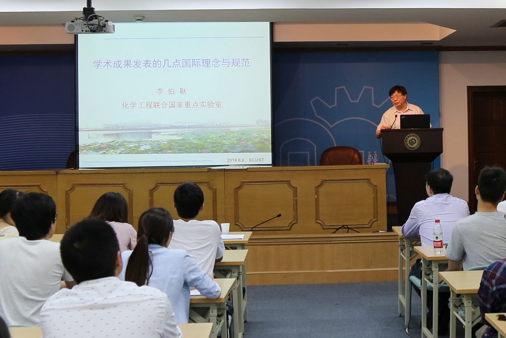 报告会上,李伯耿教授结合担任美国化学会Industrial & Engineering Chemistry Research副主编5年以来的工作经历,阐述了中国在全世界学术论文发表上的现状和存在的问题。他指出,2014年中国专利申请数占全世界的1/3,2016年预计将突破1/2,中国业已成为学术论文发表和专利申请的第一大国。但由于目前我国学术违规惩罚不严;科研工作者对学术成果发表的规范缺乏认识等多方面原因导致的诸多乱象,学术违规愈加严重。他以研究添加不同阻燃剂塑料性能为例,强调了研究课题系统化结论的重要性。接着,李伯耿教授揭示论文发表的实质是为了与别人分享科研成果,切忌不纯粹的科研态度,剽窃他人论文以及个人前期论文成果的行为。他从"Poster"(学术墙报)、"Presentation"(口头报告)、"Publication"(见刊论文)等三种途径讲述了科研想法或成果与人分享的途径以及这些方式的优缺点。其次,他从论文投稿期刊选择上作了指导。