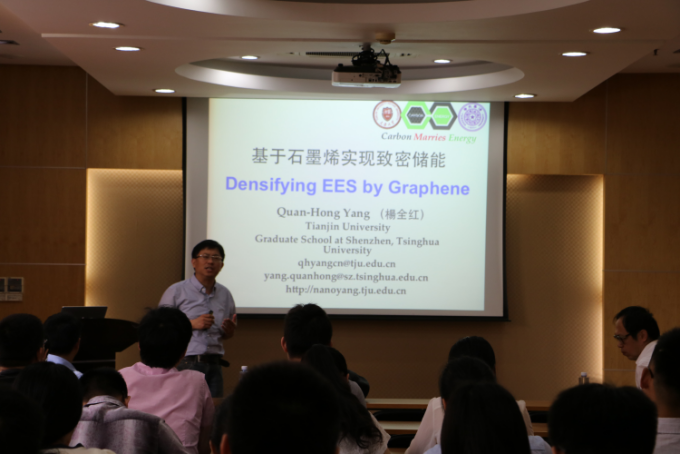 炭材料实验室特邀国家杰出青年科学基金获得者、天津大学杨全红教授来徐汇校区实验16楼作了题为《基于石墨烯实现致密储能》的学术报告。