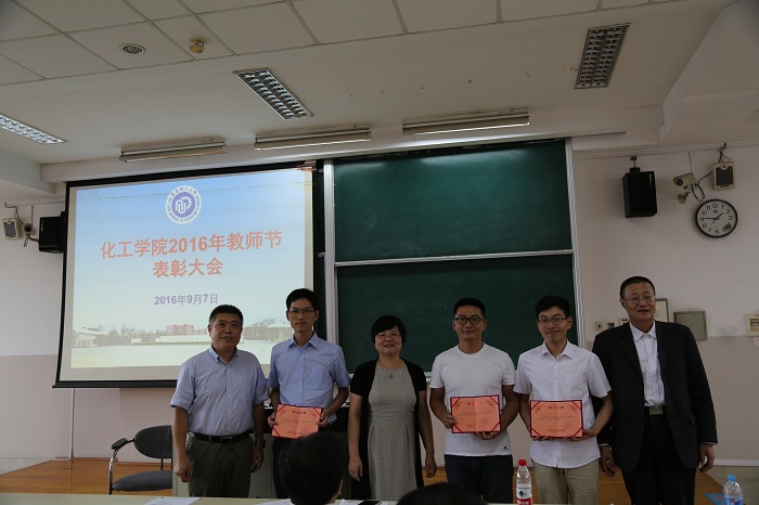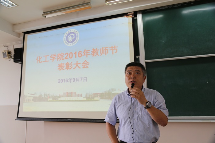 方波副院长宣读表彰“化工之星”、“三大期刊”论文作者的决定,并对近一年内在科学研究、人才计划、教学管理工作中取得突破的教师进行了表彰。刘殿华副院长表彰了2015-2016年研究生“优秀任课教师”、“优秀博士学位论文指导教师”、“优秀硕士学位论文指导教师”;李涛书记宣读表彰了2015-2016学年“优秀班导师”的决定;赵玲院长表彰了“伯乐奖”获得者郭旭虹教授,并希望全院教师共同参与培养并推荐人才。