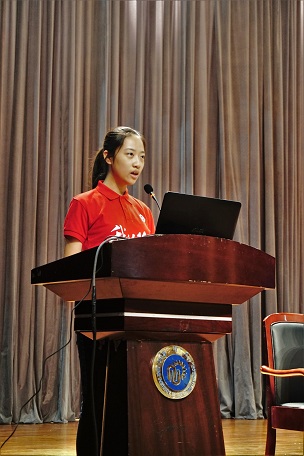 颁奖结束后,2016级新生代表任隽发言,表达了进入大学的兴奋与新鲜,展望了未来的生活与希望,最后她祝愿所有新生“脚踏实地,目视前方,哪怕再苦再累都请不要放弃,因为荆棘路的终点,定然是美好的未来。”