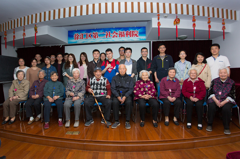 15级全日制工程硕士班党支部同学在上海市徐汇区第二社会福利院举办了五四青年节“敬老爱老”主题活动,15级全日制工程硕士班党员和同学共20余名与福利院30余名老人参与了该活动。本次活动旨在为福利院老人们带去温暖,向社会奉献爱心。活动分为三个部分,第一部分为文艺表演,第二部分为合影留念,第三部分为趣味活动。