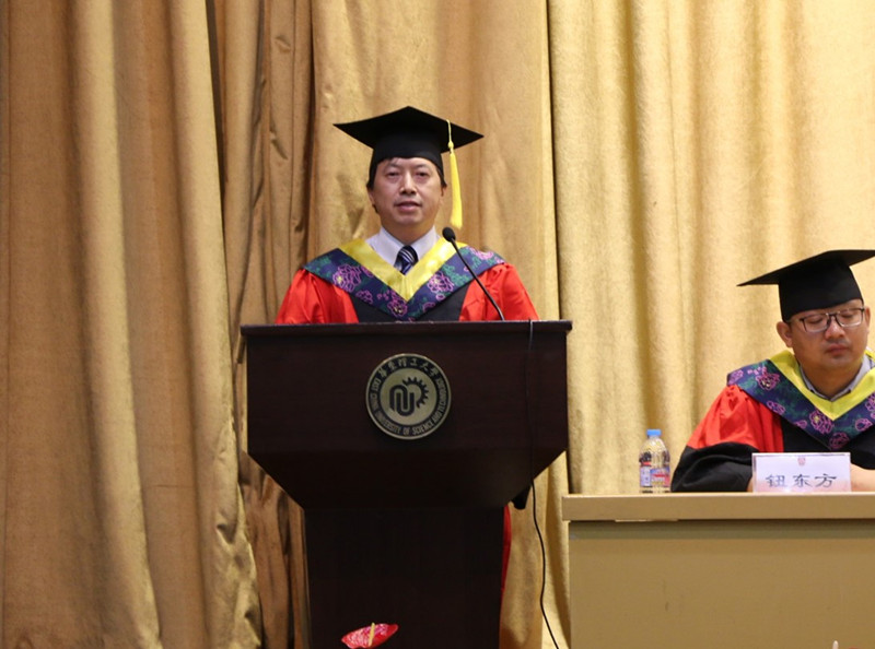 最后,副校长刘昌胜上台致辞,对全体毕业生致以最热烈的祝贺,也对辛苦付出的老师们表示了由衷的感谢。同时,他也对毕业生们提出了三点期望。第一,大气为人。要不忘初心,不惧失败,保持乐观勇敢的心态,以宽广的胸怀对待人和事。第二,大智谋事。要学会思考、学会选择,不断领悟为人做事的道理,修炼和完善自我,积累办事创业的智慧。第三,大爱行天下。要怀以感恩之心,博爱之情,勇敢地承担起对国家、民族和社会的责任,为中华民族的伟大复兴贡献自己的力量。最后,他祝愿全体毕业生们放飞梦想,青春前行。