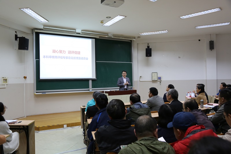 院长助理兼化工系系主任吴艳阳做学院本科教学汇报,将学院的历史沿革、办学目标与定位、办学思想与实践以及本科教学取得的各项成效进行梳理并讲解。副院长赵双良通报了审核预评估专家反馈意见,将预评估遇到的共性问题进行总结凝练,并对学院此前开展的教学资料专项检查工作以及领导听课情况做通报,提醒各专任教师规避问题及时整改。