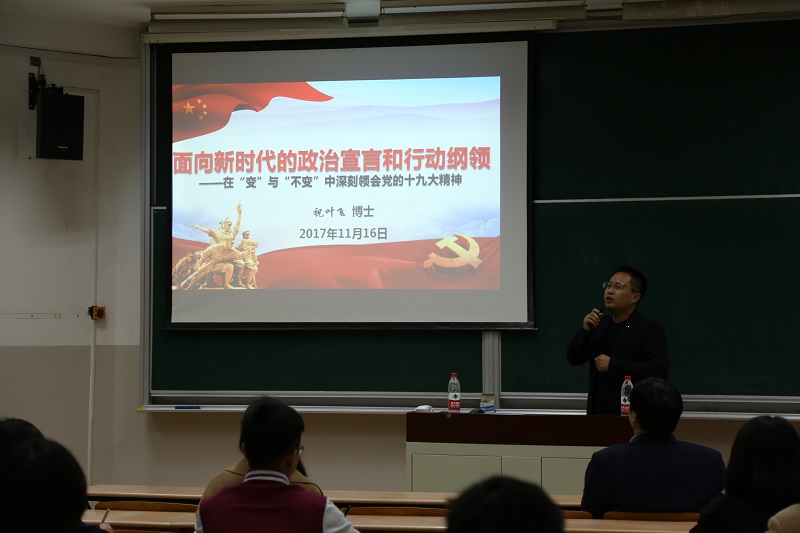在八教306室举办党的十九大专题辅导报告会,邀请了上海市长宁区委党校老师祝叶飞博士作了题为《面向新时代的政治宣言和行动纲领——在“变”与“不变”中深刻领会党的十九大精神》的辅导报告,报告由ace动漫