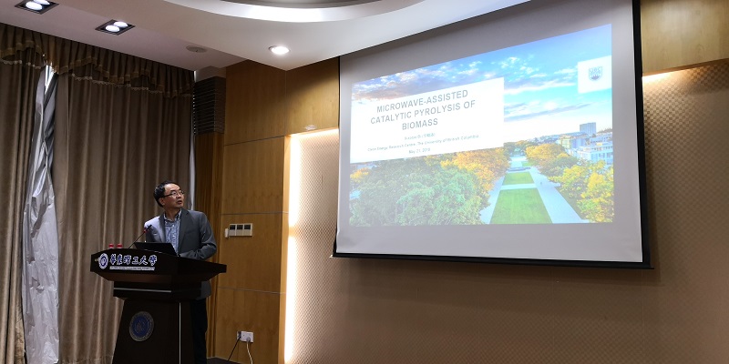 师生作了题为“Microwave-assisted Catalytic Pyrolysis of Biomass”的学术讲座,从绿色环保的角度就生物质的微波催化裂解提出了与众不同的研究思路,与教师和学生的交流气氛热烈。毕院士还就师生共同关心的访学交流等事宜一一作了详细回答。