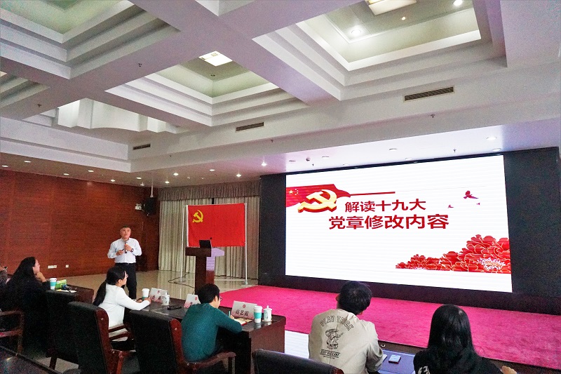 李涛教授介绍了党章的发展历程,以党章的地位作用入题,总结党的一大到十八大之间党章的变化,并指出中国共产党章程不断根据中国国情进行调整,做到“永不停滞、永不僵化”。同时报告重点介绍了党的十九大党章的变化、修改过程和特点,其中修改内容包括中国特色社会主义文化 、实现中华民族伟大复兴的中国梦、社会矛盾转化而做出的相应修改、推进国家治理体系和治理能力现代化、人类命运共同体一带一路、实现巡视全覆盖推进两学一做等十项内容,也用生动形象的语言阐述了党的十九大党章修改的重大意义。
