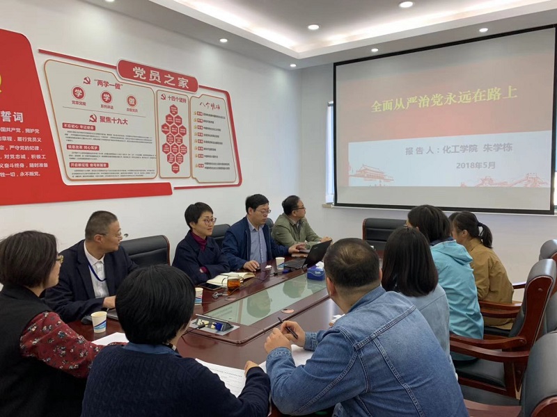 党委书记朱学栋为学院领导班子、师生党员代表讲授题为《全面从严治党永远在路上》的专题党课。