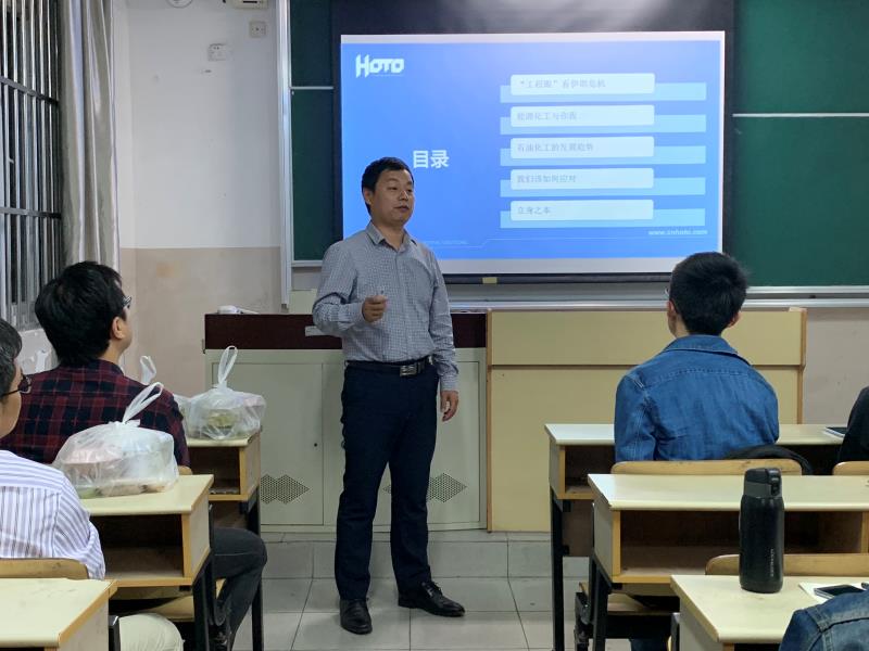 伊朗危机、中美贸易战都属于国家大事,杜如意则以“石油眼”为同学们解读之。他指出,看似遥远的国际风波随时可能影响到每一个研究生的就业选择。从自己多年来的任职经验中,杜如意为同学们归纳了3点建议:就业求职,从牢记校训做起;“三传一反”,四大化学永远是化工人的立身之本;决心比智商、情商更为重要。