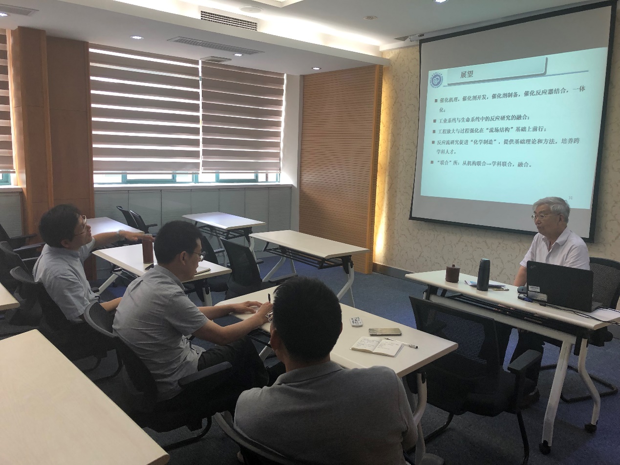 联反所党支部的邀请,在实验十六楼610会议室参加了联反所党支部的党组织活动,并作了题为“论反应流——工业体系中的化学反应与生命系统中的化学反应”的报告,为联反所党员传授他宝贵的科研经验。党组织活动由党支部副书记孙伟振主持,联反所10余名党员参加了活动。