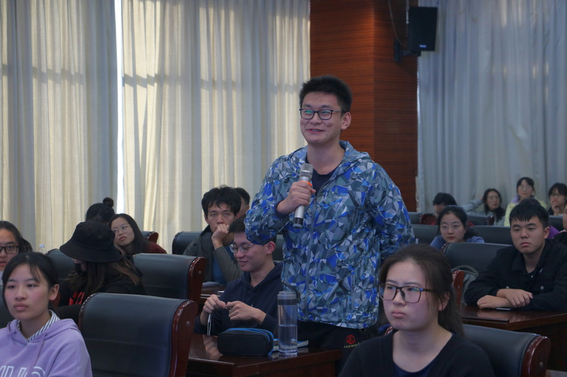 学生在互动环节,与郭旭虹教授积极进行交流。郭旭虹教授还就化学工程发展趋势、学生在求学研究时的困惑等问题,阐述了自己的看法。