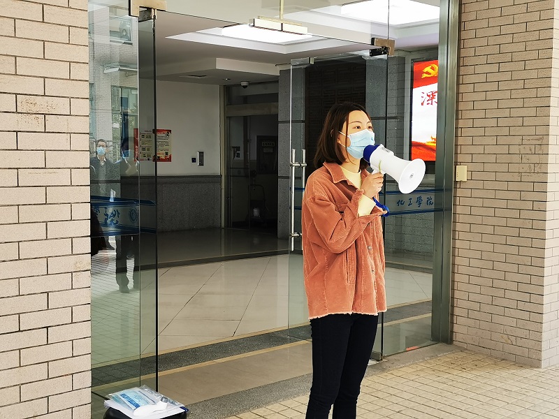 朱学栋向参加培训演练的人员介绍了学校疫情防控工作方案和学院疫情防控工作人员的任务和值班分组,并强调了疫情期间确保实验室的安全,做好实验室消毒、实验垃圾和生活垃圾处置。