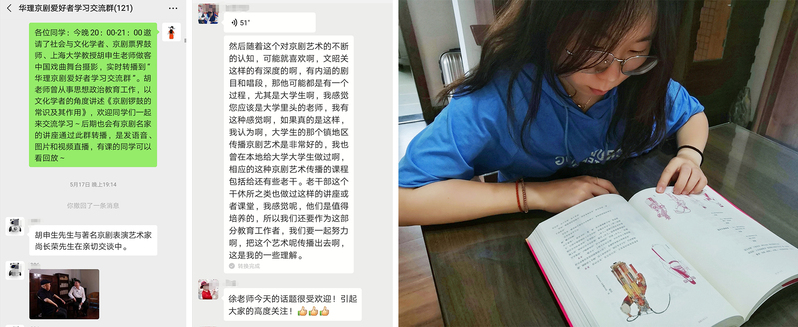 组织华理京剧爱好者收听了《浅谈艺术审美与灵魂沟通》《京剧品鉴方法与创新的方向》等五场京剧名家的艺术讲座,阅读了《探究京剧之美》《图解京剧艺术》《京剧其实很好玩》等书籍。同学们认真学习京剧的基本知识,品味国粹的魅力,提升艺术鉴赏能力,培养审美能力。活动吸引了600余人次参加。