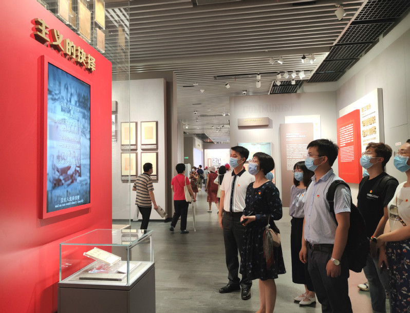 党员们先后参观了序厅、“前仆后继、救亡图存”“民众觉醒、主义抉择”“早期组织、星火初燃”“开天辟地、日出东方”“砥砺前行、光辉历程”和尾厅等7个板块,在文物实物、图片图表、油画雕塑、实景还原、多媒体声像等多种形式的展现下,沉浸式的感受中国共产党从萌芽到成立、从孕育到诞生的历史进程。