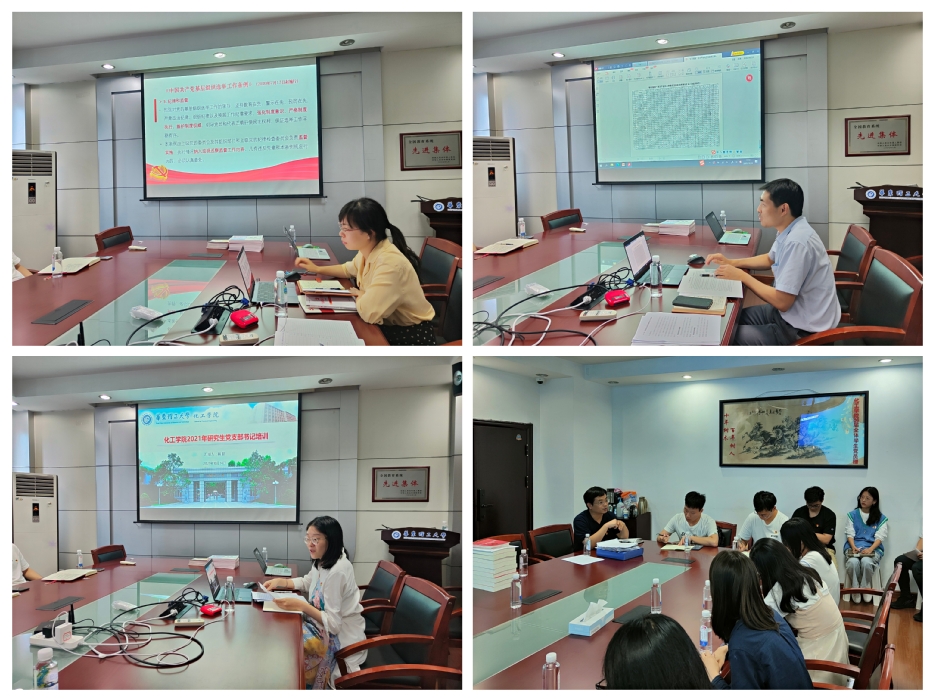 培训会上,李玉从支部换届工作要求、支部工作记录本填写规范、扎实开展“三会一课”三个方面展开,系统深入地介绍了学生党支部的各项党务工作。梅海东就支部如何开展好党史学习教育、抓好“学习强国”学习管理及做好党费收缴等方面进行了细致的讲解。杨腊从积极分子培养、研思班优秀组织生活案例、特色党支部建设、党员再教育展开,用丰富的案例加深了大家对支部建设的理解。赵红亮介绍了党员发展的具体程序和总体要求,对会议程序、时间要求、材料填写等几个具体事项进行了特别强调。