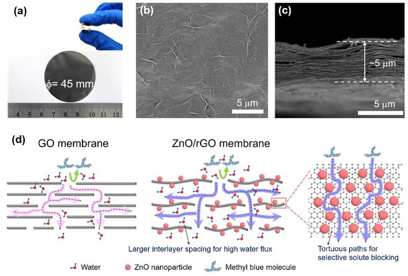 图片说明:“高水通量-高截留率”的金属氧化物/石墨烯纳米复合材料纳滤膜