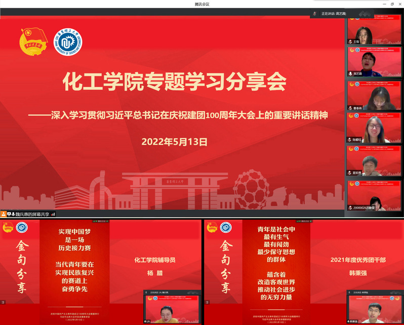 党委副书记高艺霞对团干部昂扬向上的精神面貌表示充分肯定。她表示,学院团员青年始终坚定不移跟党走,在校园疫情防控一线、科研报国的试验台前不懈奋斗,践行着“请党放心、强国有我”的青春誓言,谱写了一曲曲青春赞歌。未来,希望大家争做伟大事业的生力军,让青春在祖国和人民最需要的地方绽放绚丽之花!