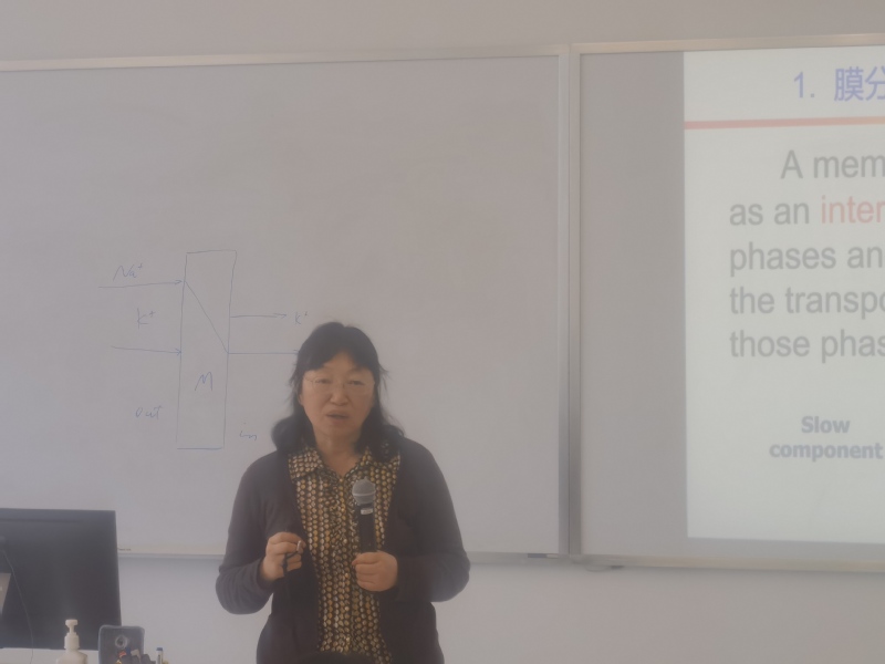 讲座中,贺高红首先以板书的形式向大家形象地介绍了膜分离的基本概念,从人体多种膜组织的功能出发生动地解释了膜材料实现不同大小分子筛分的内在原理,对比了生物体膜基于反应耦合分离的主动传递和非生物体膜材料基于化学位的被动传递过程。基于对天然膜材料结构与作用机制的深刻理解,其团队采用促进传递的方法突破了人工无法实现更具优势主动传递过程的瓶颈,并成功应用于气体分离膜领域,开发膜分离回收减排技术、近零排放以膜为核心的回收型耦合技术。面向国家在新能源和气体分离对膜材料的重大需求,她展开论述了膜的结构对其性能的影响规律,并介绍了主链设计调控膜的自由体积和耐溶胀性、侧链设计调控透过物与膜材料的关系;同时,深入浅出地介绍了膜内微结构的传质模型与调控理论,以及梯级耦合的新型高效膜过程。贺高红团队的多项研究成果打破了国外垄断,2次获得国家科技进步二等奖、第十五届中国专利优秀奖、日内瓦国际发明展览会特别嘉许金奖以及省部级以上奖励10余项。