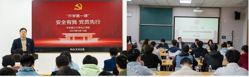 深耕细作讲好讲透“开学第一课”。3月16日上午,学院党委书记朱学栋以“安全有我,党员先行”为主题,在徐汇校区带来一节别开生面的“安全第一课”,副书记段学志、副院长周兴贵,研究生党支部书记以及全体安全委员参加党课,党课由副院长凌昊主持。课上,朱学栋以身边的事故案例为切入点,强化学生的实验室安全意识,共同筑牢实验室安全防线。3月16日中午,学院院长李春忠、党委副书记高艺霞、副院长徐至以及教师代表吴艳阳在奉贤校区与“拔尖计划”本科生座谈,以学生成长成才为主题开展“学业第一课”。会上,李春忠从专业知识积累、科研方向选择、综合素养提升等方面关心学生思想困惑和实际需求,并进行了科学解答、精准引导。