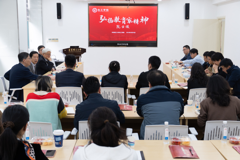随后,朱明辉、徐晶、江宏亮等教师提出了自身在科研和教学中的困惑,例如研究方向的选择、学生心理健康的关注、提高自身文化修养的方式,等等。何鸣元院士和袁渭康院士均给出了细心、真切的意见和看法。何鸣元院士提出,青年教师应该在当前环境下保持本心,聚焦国家需求,做好科学工作本身,并应具有批判精神,与工业实践结合,发展出自己的研究方向。袁渭康院士提出,作为新一代的高校教师,应珍惜现有的科研条件,少抱怨多做事,并在科研和教学中保持自律。在学生心理健康方面,何鸣元院士指出,要培养学生树立正确的三观,拥有感恩之心和敬畏之心,同时,袁渭康院士指出,可以帮助学生以“中庸”的人生态度面对问题和压力。