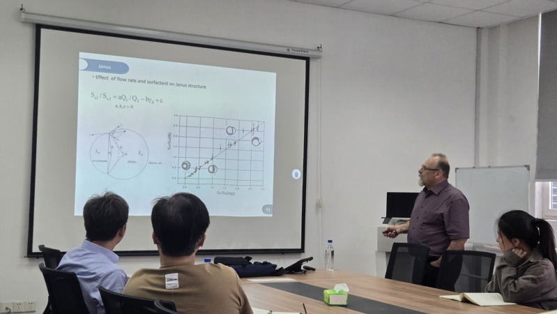 结合团队在微流控法制备微球的研究进展,Christophe教授向与会师生详细介绍了其对连续流生产尺寸控制和载药的深刻理解。连续流动的基于毛细管的微流体液滴发生器,能在几分钟内组装完成,用于生产尺寸控制和载药的普通、核壳、Janus和Trojan聚合物微载体。Christophe教授讨论了这些微载体的产生和释放特性,以及由这些不常见的形态引起的后续新的释放策略(例如顺序的,协同的)。介绍了操作参数(流体流速,单体性质,表面活性剂浓度等)如何影响聚合微载体的大小和形态,以及如何调整封装在单个微粒中的单一药物或两种不相容药物的持续释放。为药物载体的快速发展作出了突出贡献。最后,Christophe教授展望了连续微流控的未来发展,极大地开阔了与会师生的视野,引起了大家的热烈提问,并对微流控法用于聚合反应以及粒径控制等方面进行了广泛探讨。