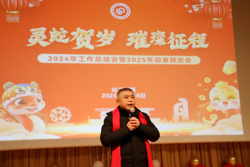 上午,全体教职工齐聚一堂,共同回顾过去一年的奋斗历程,展望新一年的发展蓝图,现场气氛热烈而温馨。学院党委书记段学志以“凝心聚力踏新程,携手奋进绘新篇”为主题发表致辞。他深情回顾了过去一年学院在各项工作中取得的成绩与进步,对全体教职工的辛勤付出表示衷心感谢。他强调,2025年是“十四五”收官和“十五五”谋划之年,在新的一年里,学院将继续坚持以习近平新时代中国特色社会主义思想为指导,贯彻落实学校第十二次党代会精神,紧紧围绕立德树人根本任务,不断推进学院各项事业的高质量发展。全体教师要继续秉持团结协作、锐意进取的精神,以更加饱满的热情和更加昂扬的斗志,迎接新的挑战,创造新的辉煌,为学院的高质量发展注入强大动力,携手书写属于化工人的新篇章。