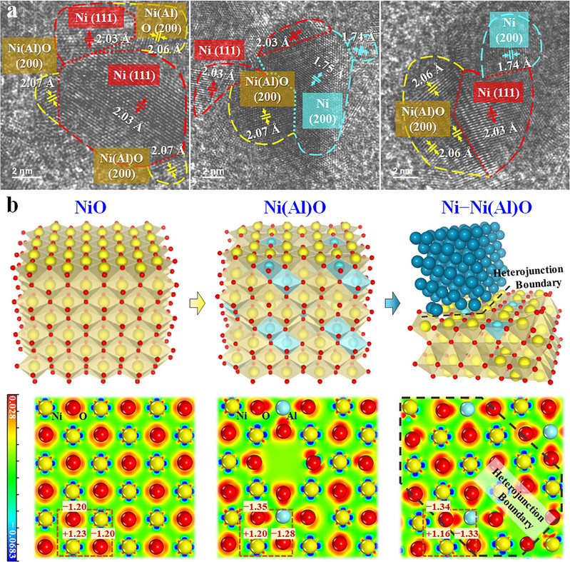 此外,本研究开发的Ni@CMO催化剂体系通过原位拓扑转变构建出丰富的Ni–Ni(Al)O异质结边界,并结合磷钨酸调控形成可控的金属/非金属及酸/碱位点协同体系,兼具高活性与高选择性。配合深入的介观动力学研究(包含同位素示踪、动力学解析与DFT计算),首次明确了各子反应的速率控制步骤及关键活性位点特征,建立了催化界面电子结构与催化性能之间的构-效关联。这一体系显著简化了传统芳胺生产流程,大幅降低了能耗与物耗,在工艺可持续性和经济性方面展现出明显优势,为绿色高效芳胺合成提供了新的设计理念和技术路径。