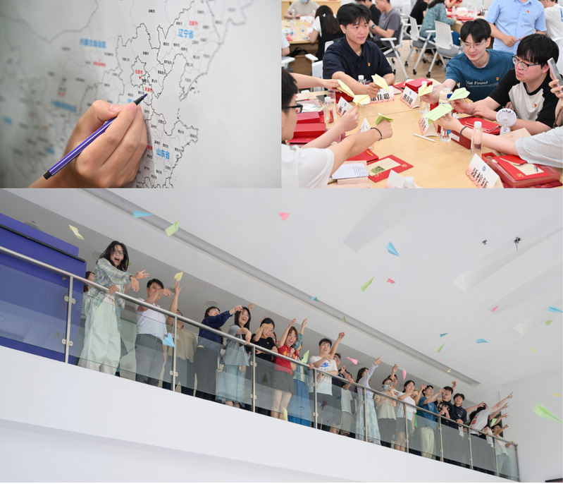 毕业生党员将在不同岗位上延续党的事业。伴随“3,2,1——起飞!”的倒计时,写满对党的承诺与未来期许的纸飞机腾空而起,将现场气氛推向热烈顶点。