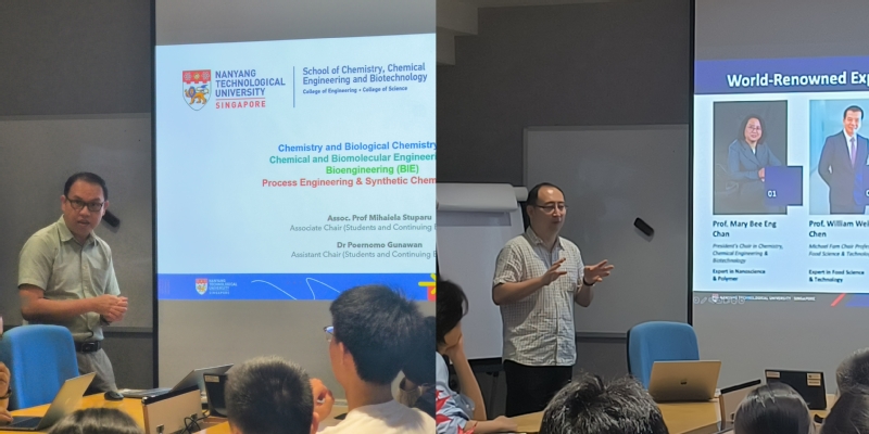 在南洋理工大学化学化工与生物技术学院,该院学生事务与继续教育助理主席Poernomo Gunawan博士介绍了该校的教育体系与国际化特色。院长助理刘汶副教授介绍了该院理工交叉的跨学科、国际化师资团队和主要科研方向,以及该院为适应人工智能时代化工高层次人才培养需求新增的“Chemical Modelling”硕士项目。在交流互动环节,同学们针对人工智能与化工交叉赋能的可能性等展开热烈讨论。