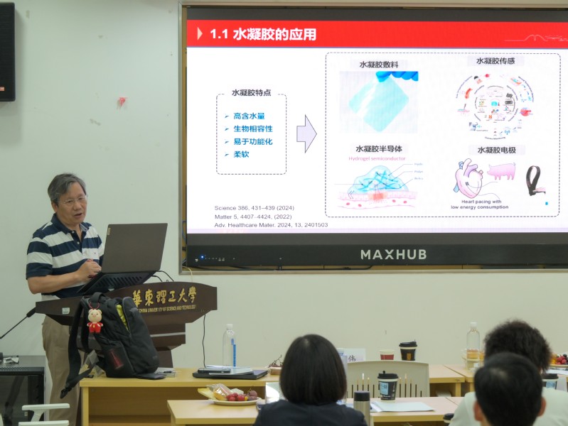 武培怡教授作了题为“热致硬化水凝胶”的学术报告。他生动描绘了发现“热致硬化水凝胶”这一现象的场景,创新提出了基于动态物理交联与热触发相变协同调控的设计策略,成功构建了一系列具有高热敏性和可控刚度的水凝胶体系,显著提升了水凝胶材料在高温下的机械强度与结构稳定性。最后,他展望了水凝胶材料在生物医疗器械及高温软机器人等领域的发展与应用,提出热致硬化水凝胶机理亟待进一步探索。